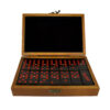 Matériaux : Coffret en bois et dominos en plastique avec point central en acier
